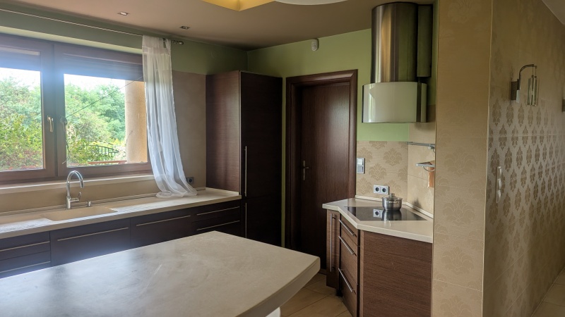 Dom o pow. 250m2, wolnostojący, jednokondygnacyjny z ciekawie zagospodarowanym poddaszem użytkowym. Wybudowany na działce o pow.1524m2. Dom składa się z 5 sypialni( w tym główna z własną łazienką i garderobą), salonu z kominkiem, kuchni, 2 łazienek głównych, toalety , garażu na dwa auta w bryle budynku oraz zadaszonej wiaty grillowej/ biesiadnej z boku działki. Jest w pełni wykończony, wyposażony , nowocześnie urządzony, posiada wiele szaf komandor. Budynek ogrzewany pompą ciepła, woda- ujęcie własne. Możliwość podpięcia do wody miejskiej, gazu i kanalizacji ; główne ich nitki podciągnięte są w pobliżu działki. Położenie: Autobus linii Wołomin-Warszawa 1km, PKP 1km, szkoła podstawowa 1km, sklepy 800m.